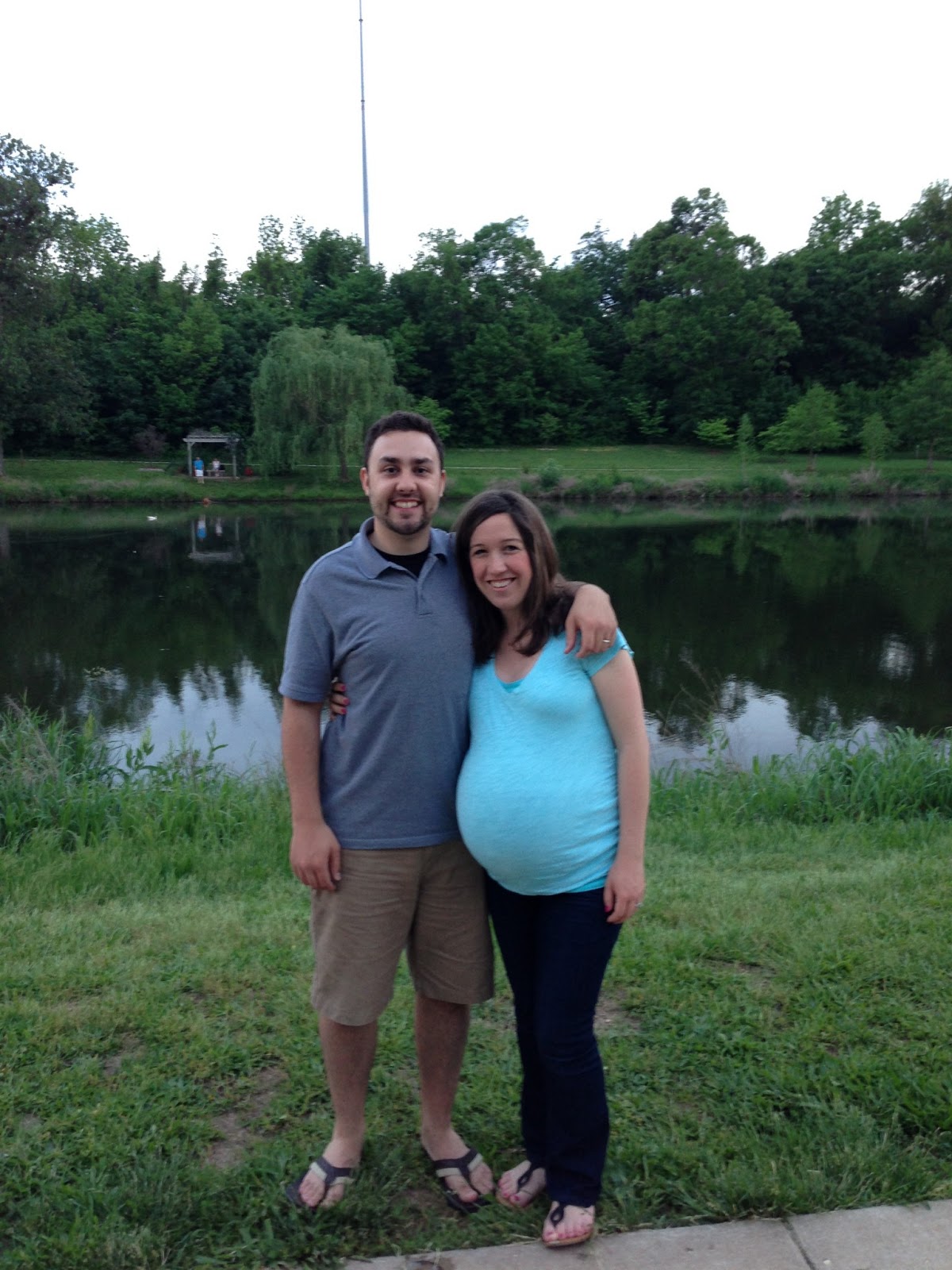 Yesterday, I received wonderful news at the neonatologist's office that the boys are both measuring 5 lbs and 9 ozs. These are great weights for twins, especially at 35 weeks, 1 day, and it's laugh-out-loud fun that their estimated weights are the same since this is unusual for mono-di twins (who usually have a discordance of weight allowing for one twin a size lead over his/her sibling). For the curious...I've gained 42 lbs so far, just 2 pounds more than what I gained with Thomas. Here's the most recent photo of me I found on my phone when my family was in town this past weekend and we visited my favorite park. I think this pic really captures how different a twin belly looks. It's a whole different kind of big. Keg big.